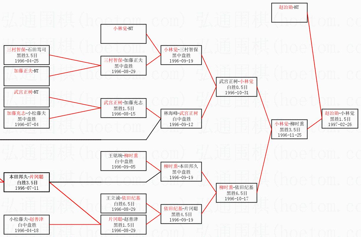 | 1.赵治勋获得冠军,小林觉获得亚军。决赛比分:赵治勋4:1小林觉。棋局: | ||