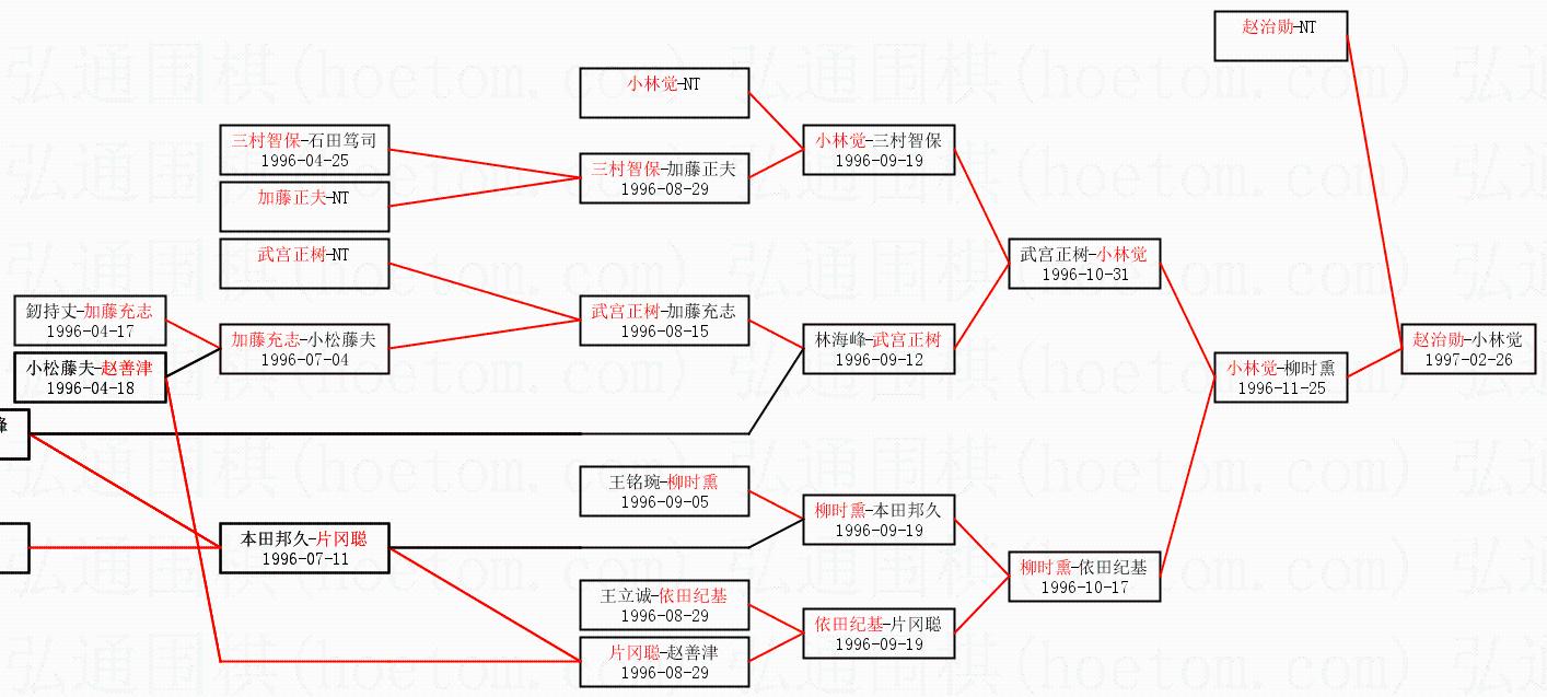 | 1.赵治勋获得冠军,小林觉获得亚军。决赛比分:赵治勋4:1小林觉。棋局: | ||