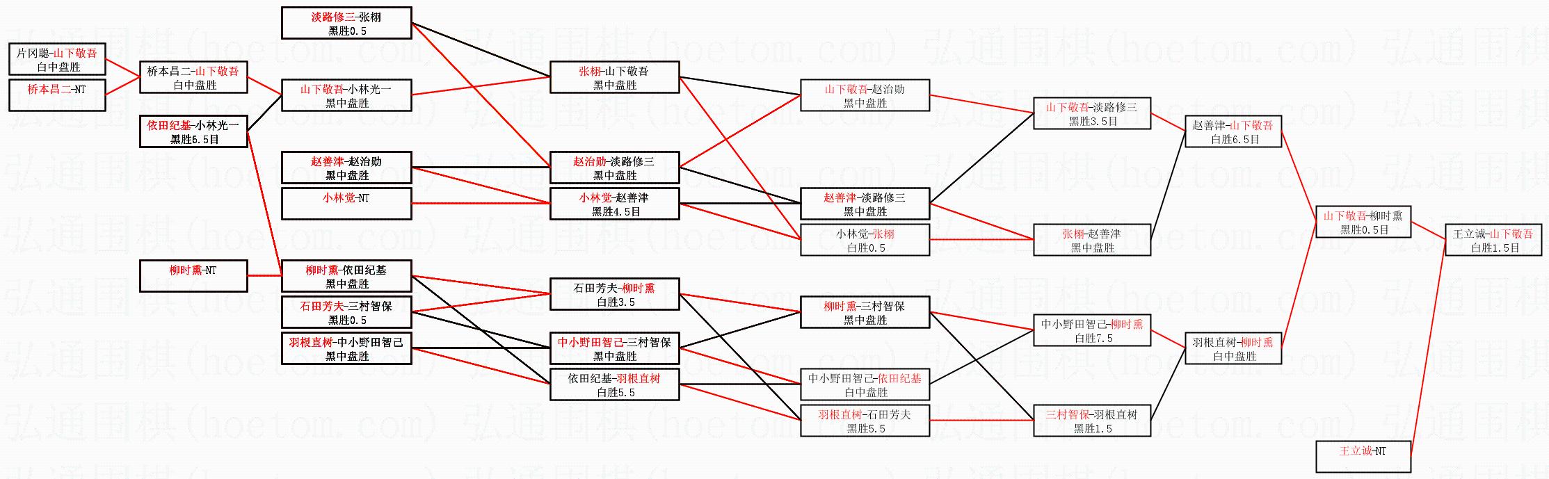 1.山下敬吾获得冠军,王立诚获得亚军。决赛比分:山下敬吾4:1王立诚。棋局: