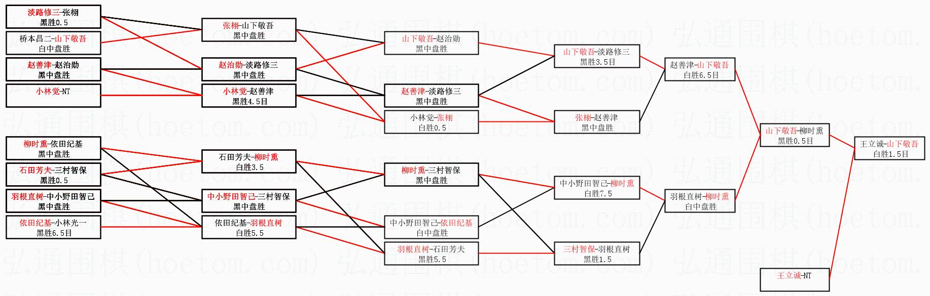 | 2.上半区半决赛山下敬吾获胜, 比分:山下敬吾 1:0 柳时熏。棋局: | ||