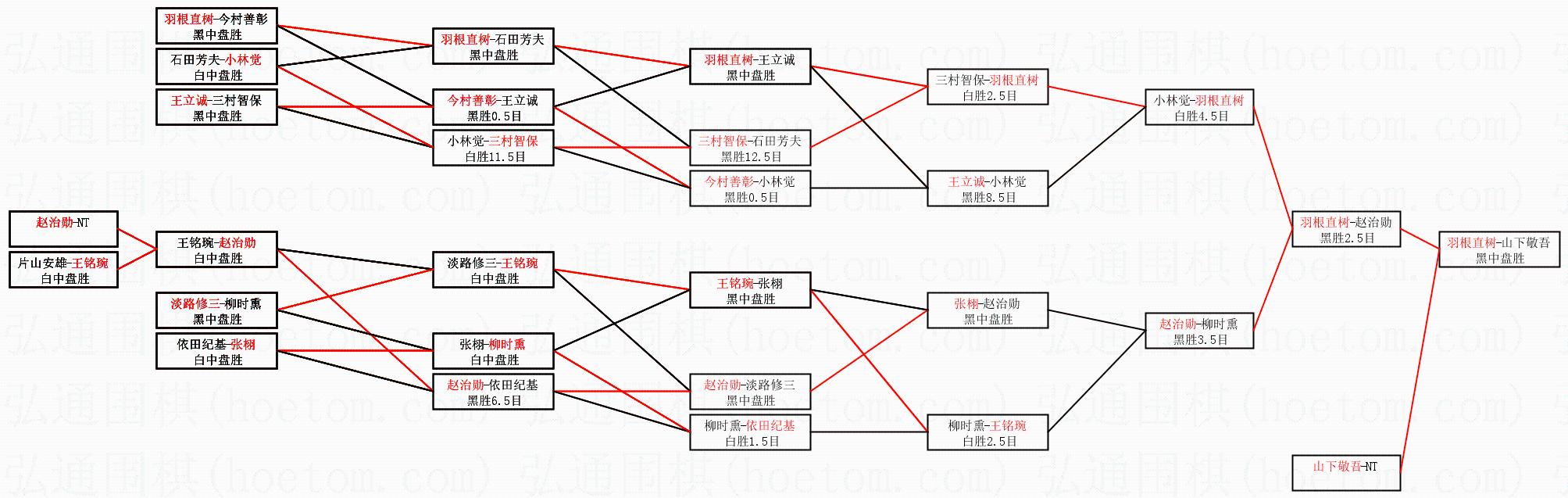 2.上半区半决赛羽根直树获胜, 比分:羽根直树 1:0 赵治勋。棋局:
