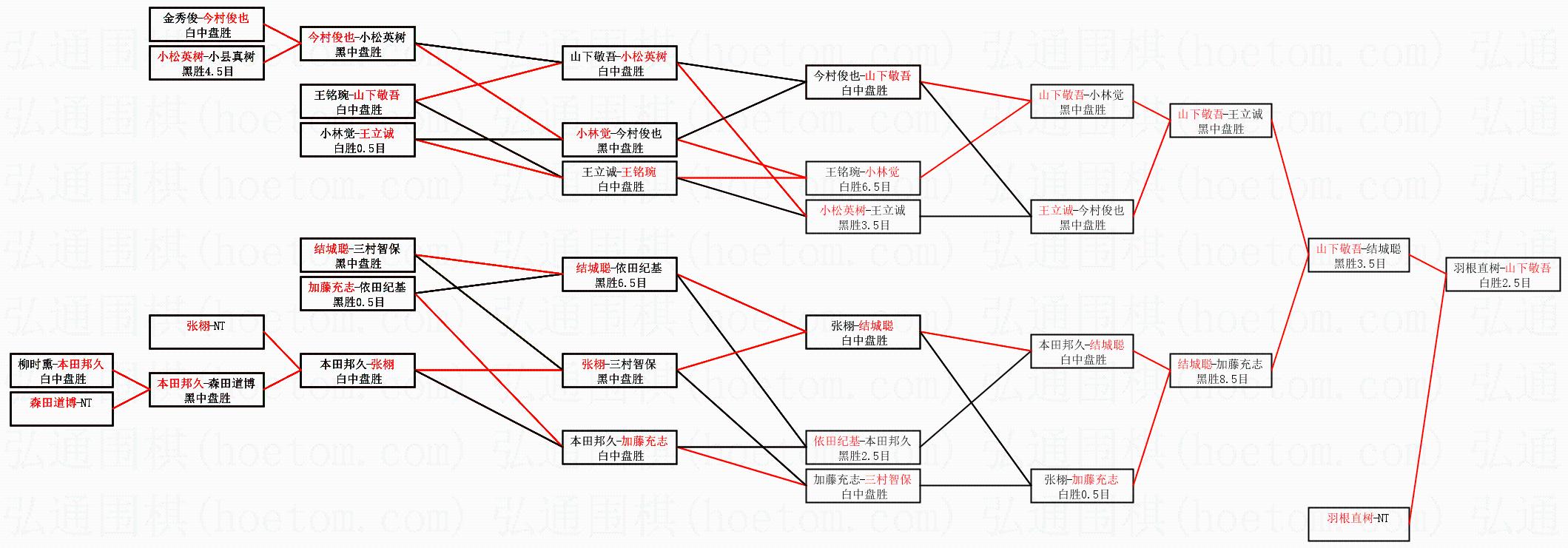 1.山下敬吾获得冠军,羽根直树获得亚军。决赛比分:山下敬吾4:0羽根直树。棋局: