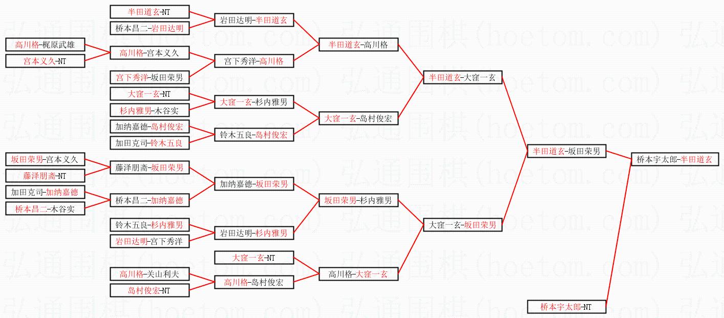 | 1.半田道玄获得冠军,桥本宇太郎获得亚军。决赛比分:半田道玄3:1桥本宇太郎。棋局: | ||