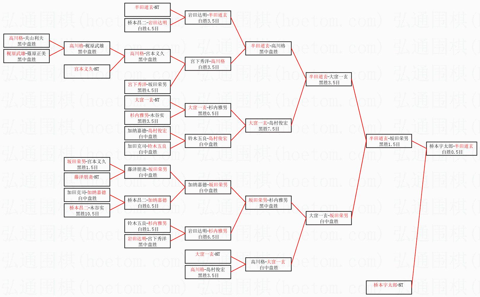 | 1.半田道玄获得冠军,桥本宇太郎获得亚军。决赛比分:半田道玄3:1桥本宇太郎。棋局: | ||