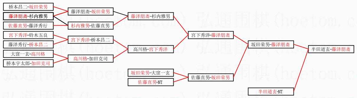 | 2.上半区半决赛藤泽朋斋获胜, 比分:藤泽朋斋 1:0 坂田荣男。棋局: | ||