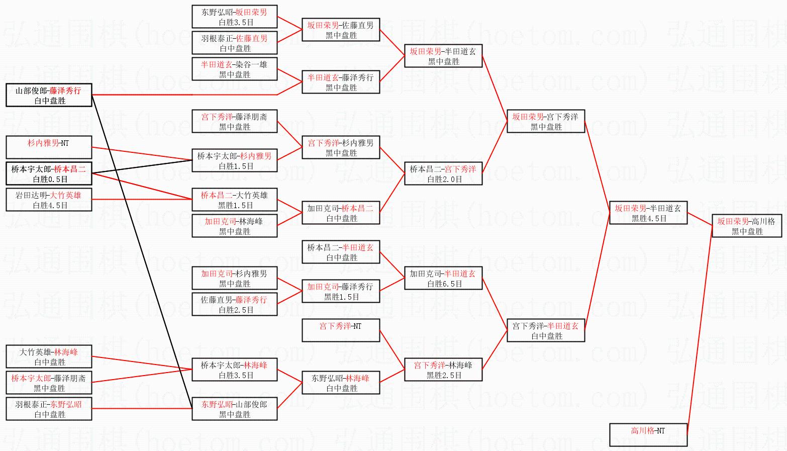 | 2.上半区半决赛坂田荣男获胜, 比分:坂田荣男 1:0 半田道玄。棋局: | ||
