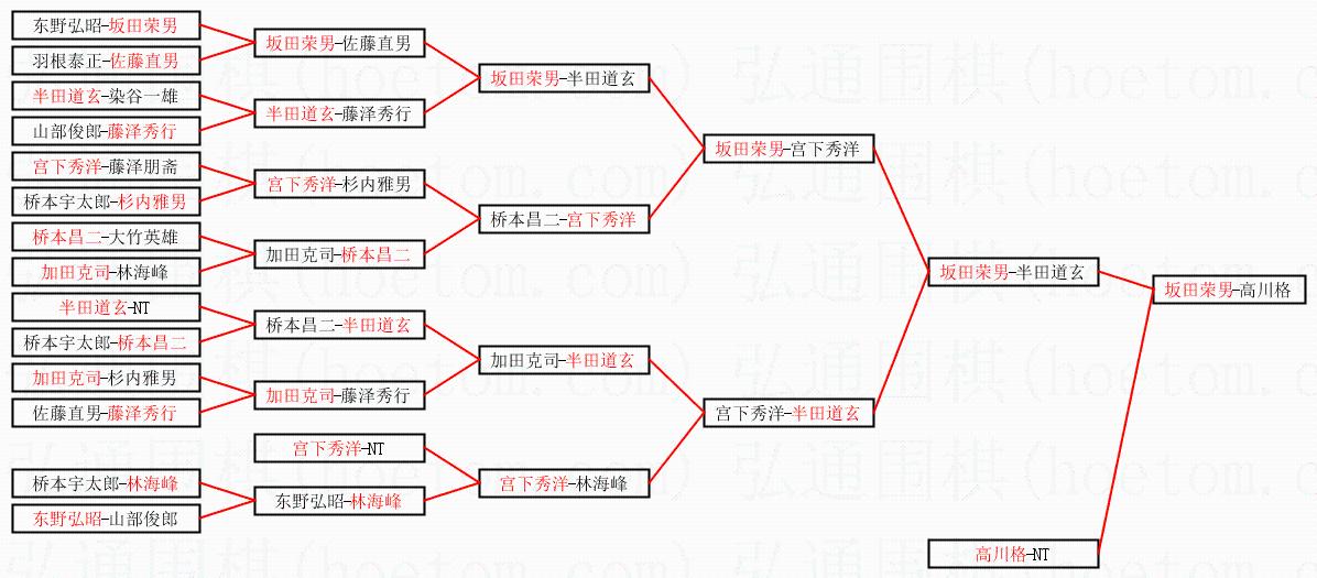 2.上半区半决赛坂田荣男获胜, 比分:坂田荣男 1:0 半田道玄。棋局: