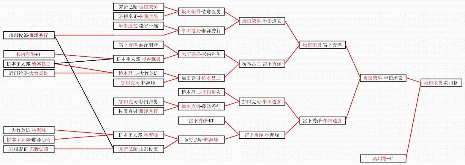 | 1.坂田荣男获得冠军,高川格获得亚军。决赛比分:坂田荣男3:1高川格。棋局: | ||