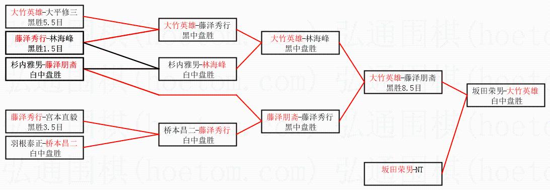 1.大竹英雄获得冠军,坂田荣男获得亚军。决赛比分:大竹英雄3:0坂田荣男。棋局: