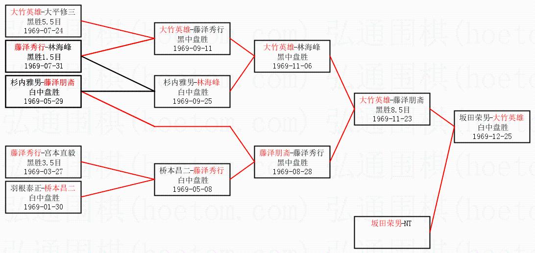 1.大竹英雄获得冠军,坂田荣男获得亚军。决赛比分:大竹英雄3:0坂田荣男。棋局: