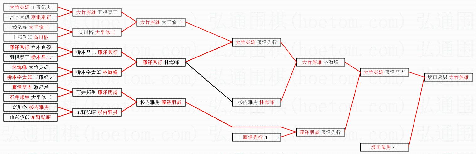 2.上半区半决赛大竹英雄获胜, 比分:大竹英雄 1:0 藤泽朋斋。棋局: