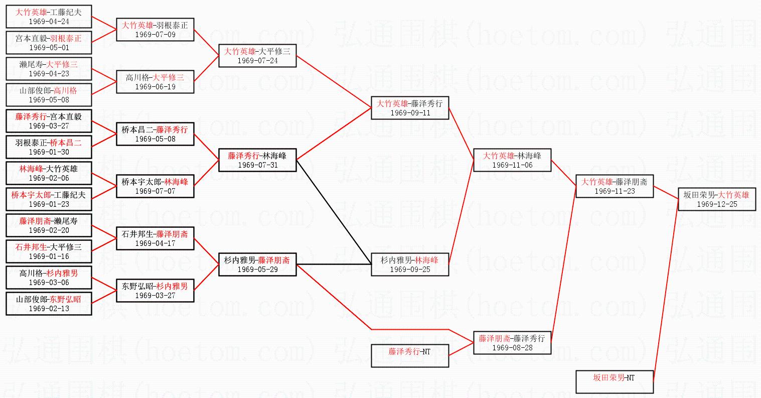1.大竹英雄获得冠军,坂田荣男获得亚军。决赛比分:大竹英雄3:0坂田荣男。棋局: