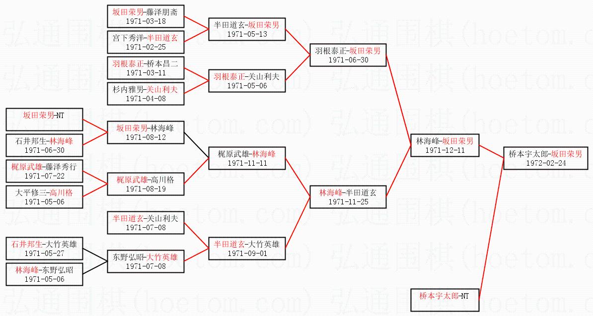 | 1.坂田荣男获得冠军,桥本宇太郎获得亚军。决赛比分:坂田荣男3:2桥本宇太郎。棋局: | ||