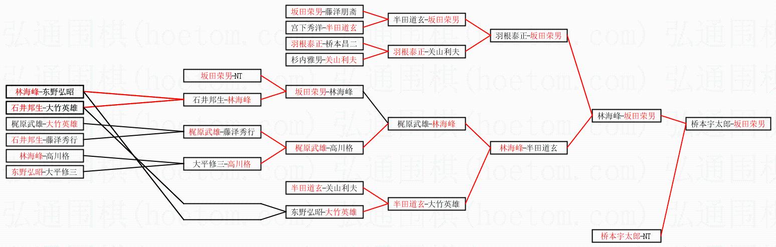 | 1.坂田荣男获得冠军,桥本宇太郎获得亚军。决赛比分:坂田荣男3:2桥本宇太郎。棋局: | ||