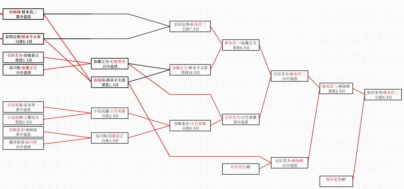 | 2.上半区半决赛桥本昌二获胜, 比分:桥本昌二 1:0 林海峰。棋局: | ||