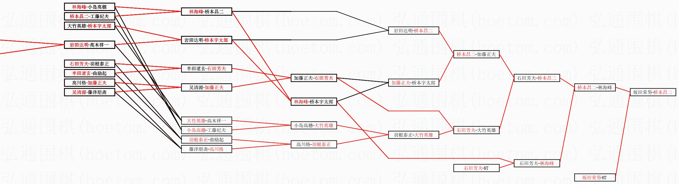| 2.上半区半决赛桥本昌二获胜, 比分:桥本昌二 1:0 林海峰。棋局: | ||