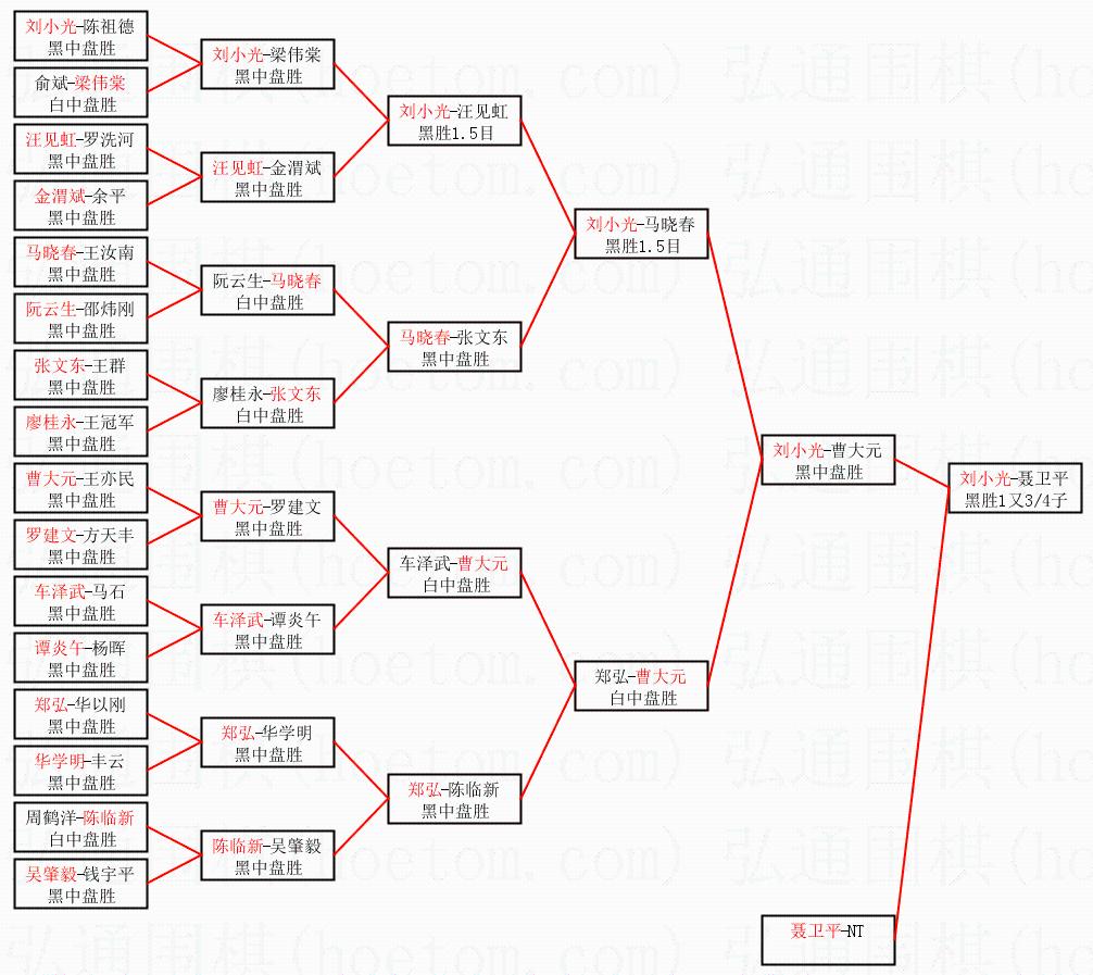 2.上半区半决赛刘小光获胜, 比分:刘小光 1:0 曹大元。棋局: