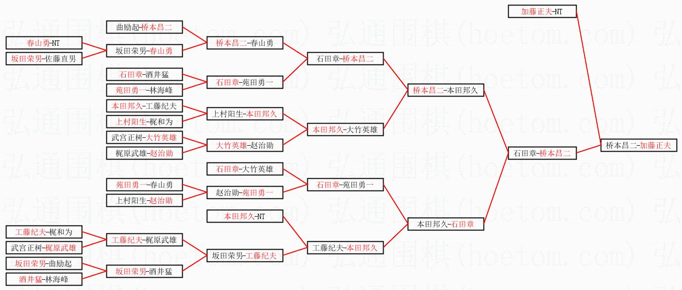 1.加藤正夫获得冠军,桥本昌二获得亚军。决赛比分:加藤正夫3:1桥本昌二。棋局: