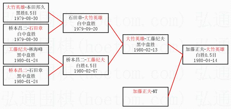 | 1.大竹英雄获得冠军,加藤正夫获得亚军。决赛比分:大竹英雄3:2加藤正夫。棋局: | ||