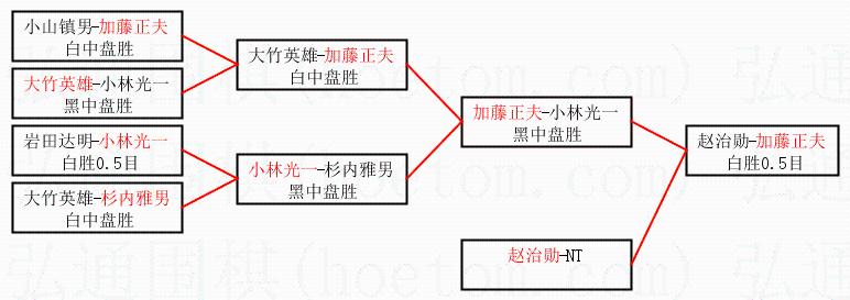 | 1.加藤正夫获得冠军,赵治勋获得亚军。决赛比分:加藤正夫3:2赵治勋。棋局: | ||