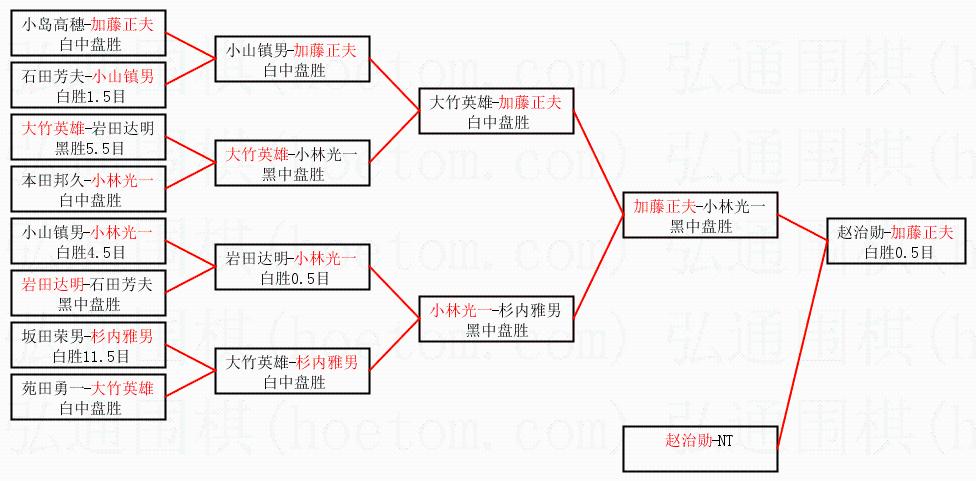 | 1.加藤正夫获得冠军,赵治勋获得亚军。决赛比分:加藤正夫3:2赵治勋。棋局: | ||