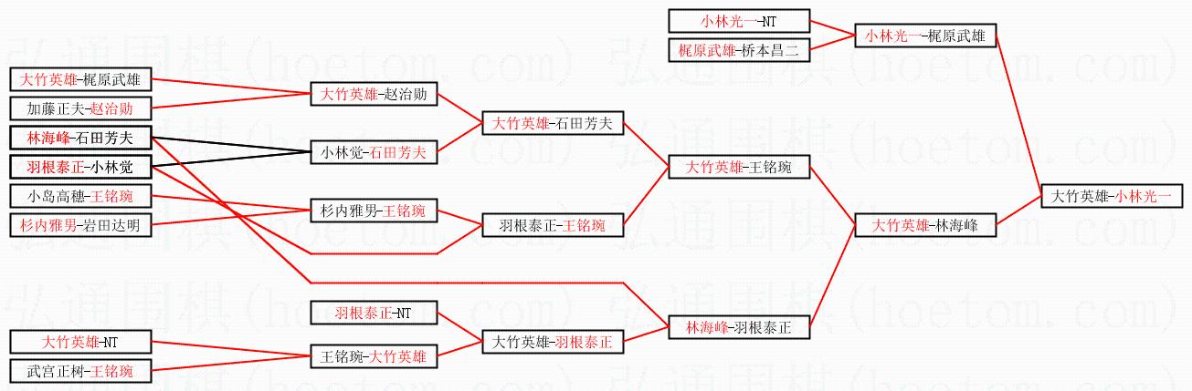 | 1.小林光一获得冠军,大竹英雄获得亚军。决赛比分:小林光一3:0大竹英雄。棋局: | ||