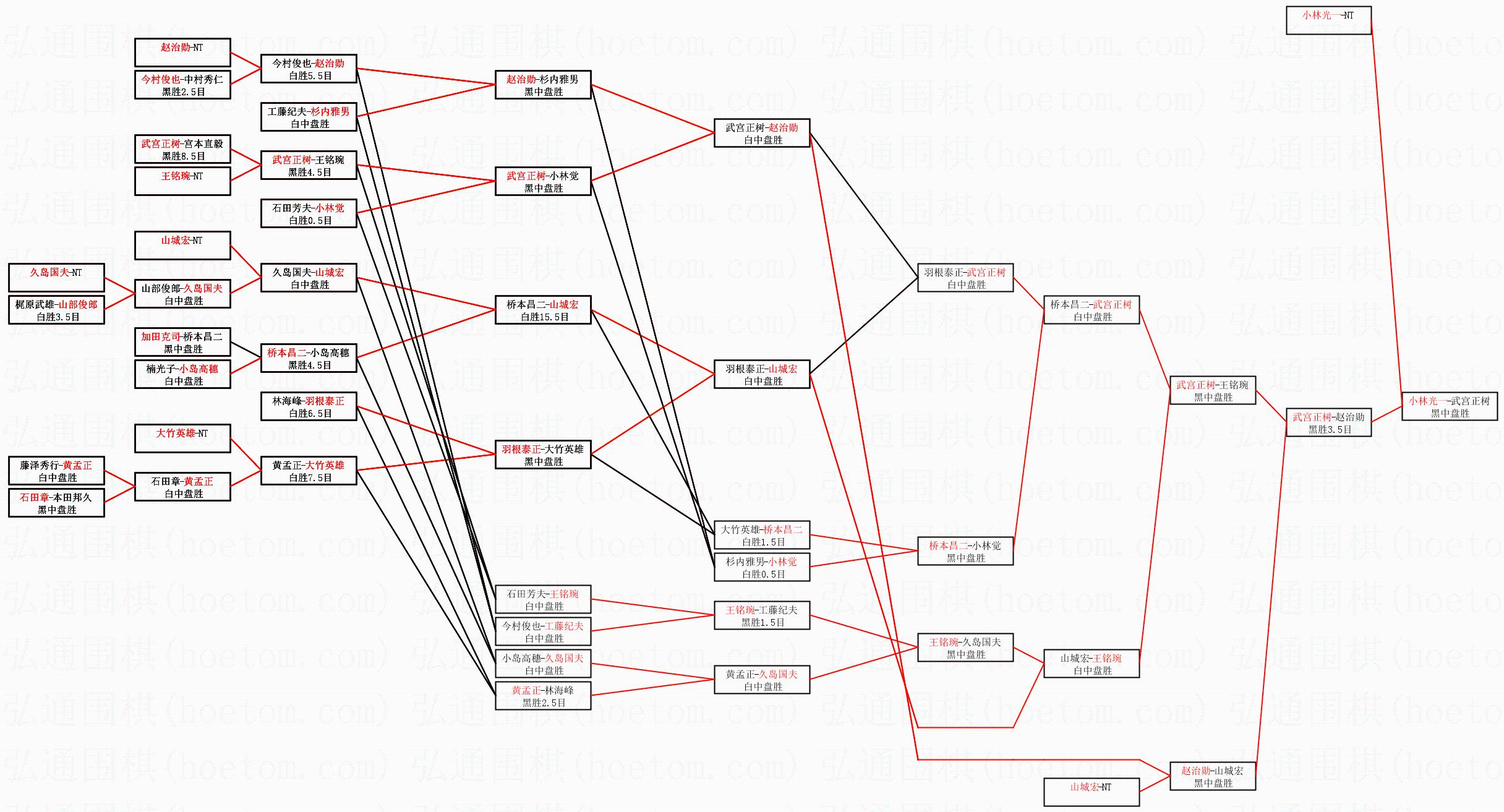 3.下半区半决赛武宫正树获胜,比分:武宫正树1:0赵治勋。棋局: