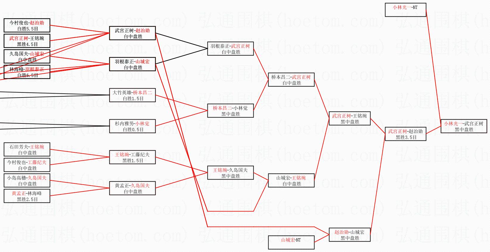 1.小林光一获得冠军,武宫正树获得亚军。决赛比分:小林光一3:0武宫正树。棋局: