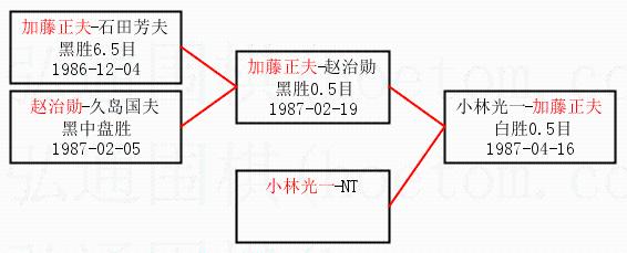 2.上半区半决赛加藤正夫获胜, 比分:加藤正夫 1:0 赵治勋。棋局:
