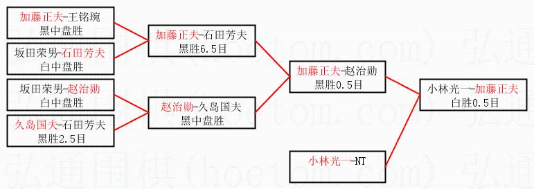1.加藤正夫获得冠军,小林光一获得亚军。决赛比分:加藤正夫3:1小林光一。棋局: