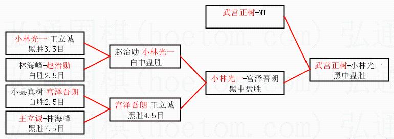 1.武宫正树获得冠军,小林光一获得亚军。决赛比分:武宫正树3:1小林光一。棋局: