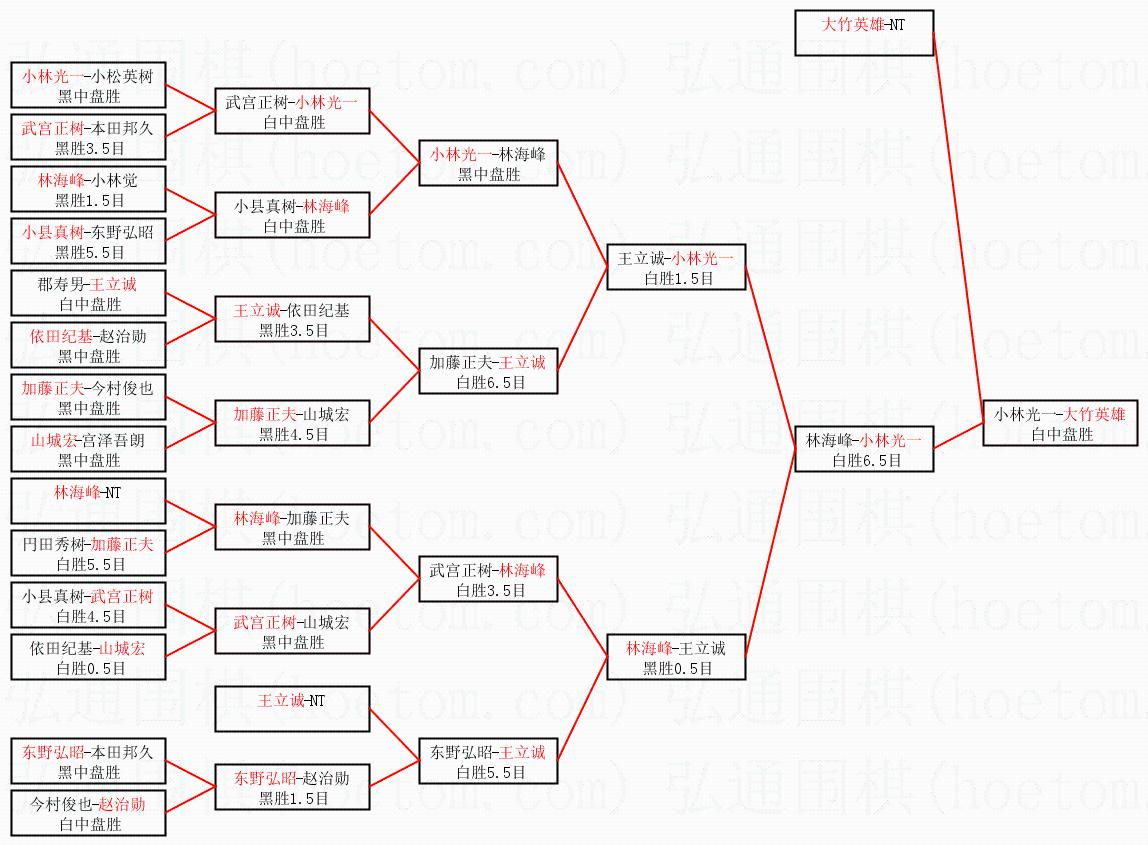 1.大竹英雄获得冠军,小林光一获得亚军。决赛比分:大竹英雄3:2小林光一。棋局: