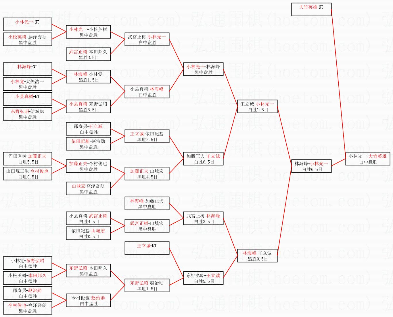 | 1.大竹英雄获得冠军,小林光一获得亚军。决赛比分:大竹英雄3:2小林光一。棋局: | ||