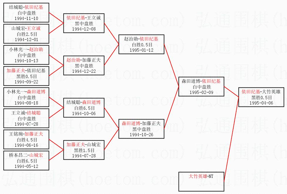 1.依田纪基获得冠军,大竹英雄获得亚军。决赛比分:依田纪基3:0大竹英雄。棋局: