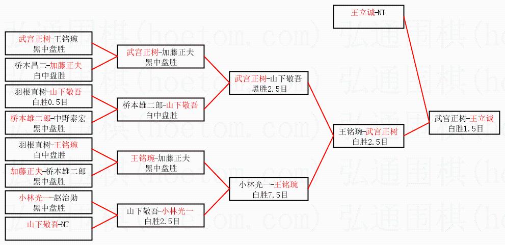 3.下半区半决赛武宫正树获胜,比分:武宫正树1:0王铭琬。棋局: