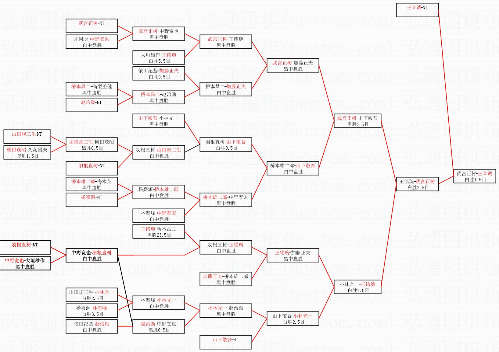 3.下半区半决赛武宫正树获胜,比分:武宫正树1:0王铭琬。棋局: