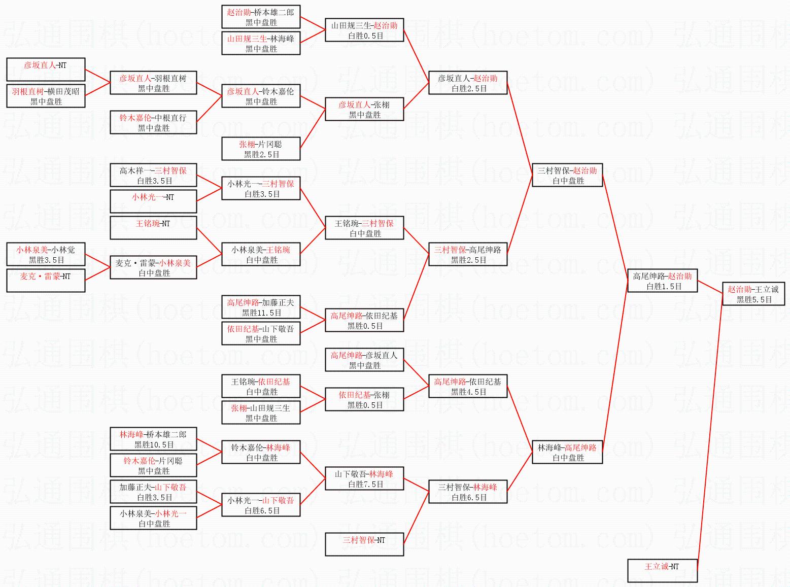 1.赵治勋获得冠军,王立诚获得亚军。决赛比分:赵治勋3:2王立诚。棋局: