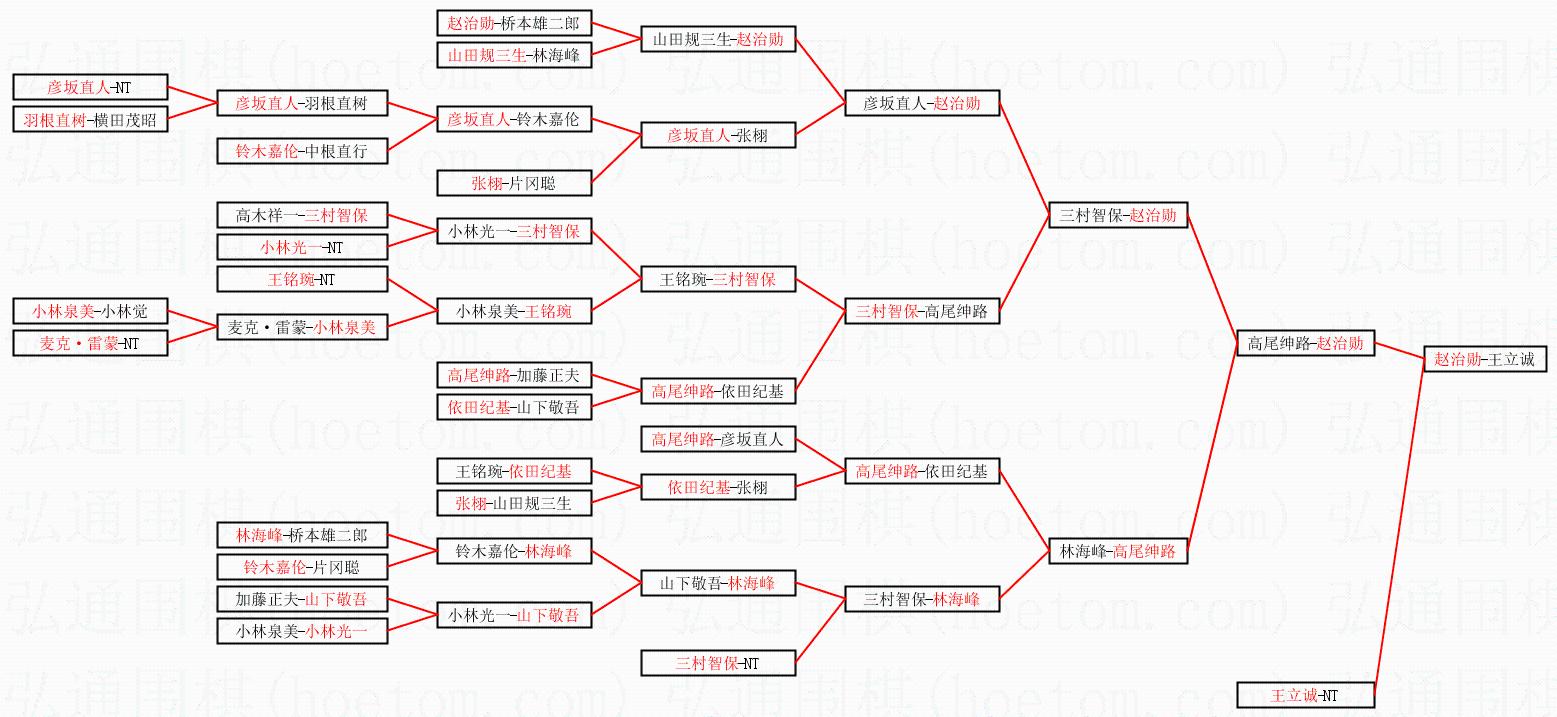 | 2.上半区半决赛赵治勋获胜, 比分:赵治勋 1:0 高尾绅路。棋局: | ||