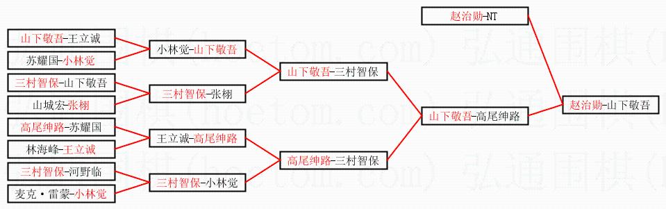 3.下半区半决赛山下敬吾获胜,比分:山下敬吾1:0高尾绅路。棋局: