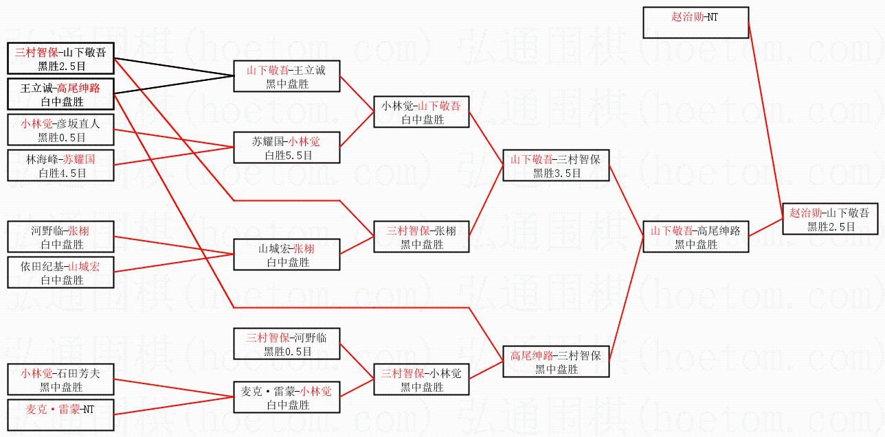 1.赵治勋获得冠军,山下敬吾获得亚军。决赛比分:赵治勋3:1山下敬吾。棋局: