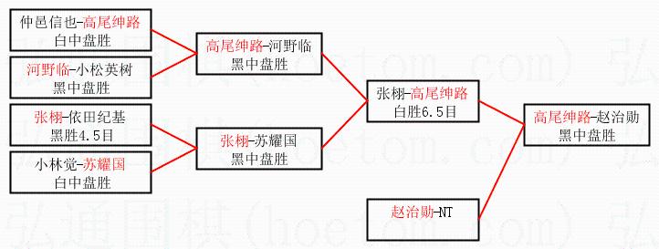 2.上半区半决赛高尾绅路获胜, 比分:高尾绅路 1:0 张栩。棋局: