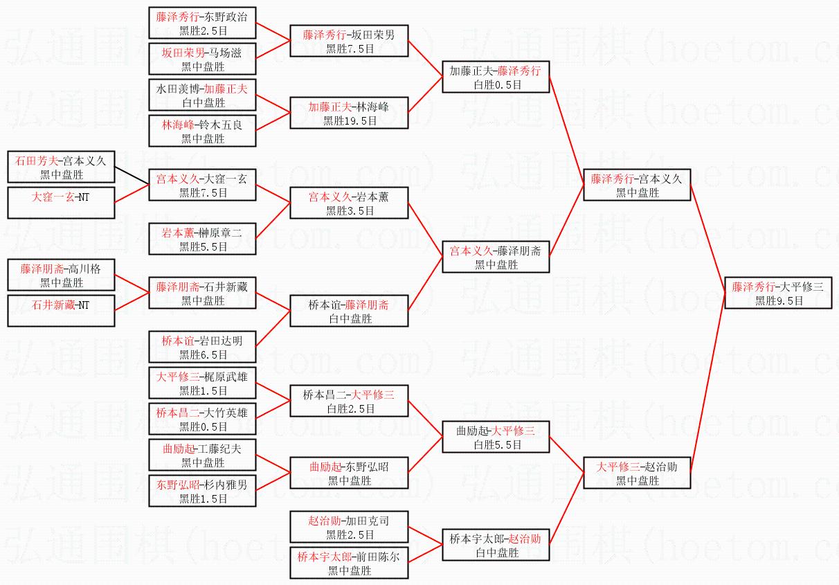 | 1.藤泽秀行获得冠军,大平修三获得亚军。决赛比分:藤泽秀行3:1大平修三。棋局: | ||