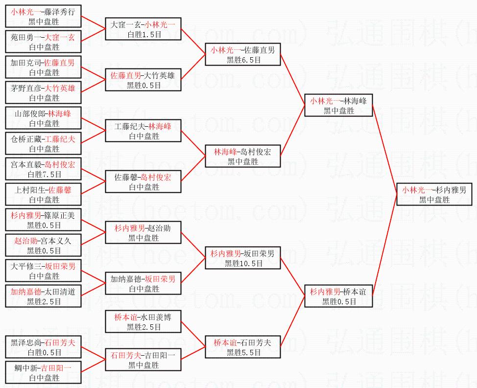 | 1.小林光一获得冠军,杉内雅男获得亚军。决赛比分:小林光一3:1杉内雅男。棋局: | ||