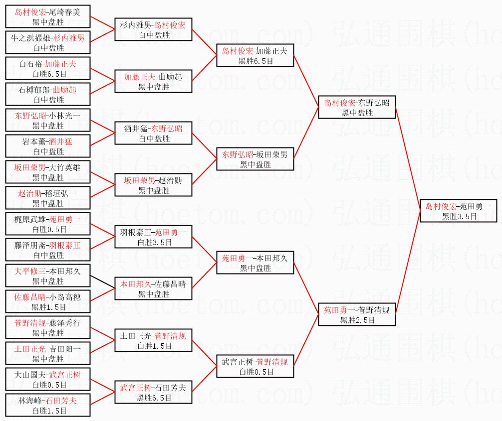 | 1.岛村俊宏获得冠军,苑田勇一获得亚军。决赛比分:岛村俊宏3:1苑田勇一。棋局: | ||