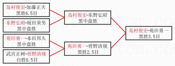 | 3.下半区半决赛苑田勇一获胜,比分:苑田勇一1:0菅野清规。棋局: | ||