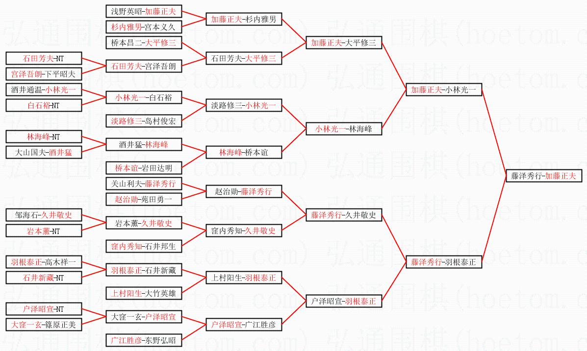 1.加藤正夫获得冠军,藤泽秀行获得亚军。决赛比分:加藤正夫3:1藤泽秀行。棋局: