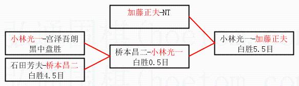 | 1.加藤正夫获得冠军,小林光一获得亚军。决赛比分:加藤正夫3:2小林光一。棋局: | ||