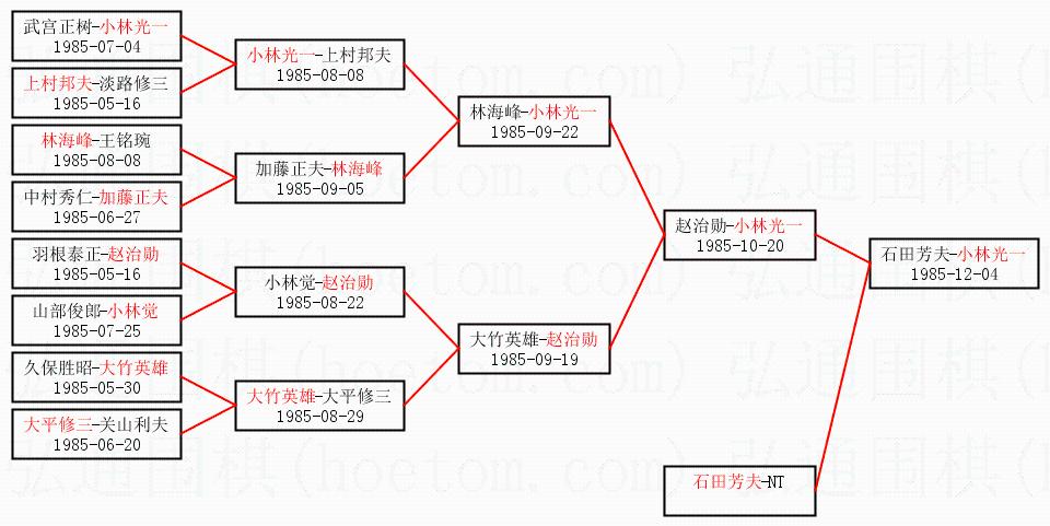 1.小林光一获得冠军,石田芳夫获得亚军。决赛比分:小林光一3:0石田芳夫。棋局: