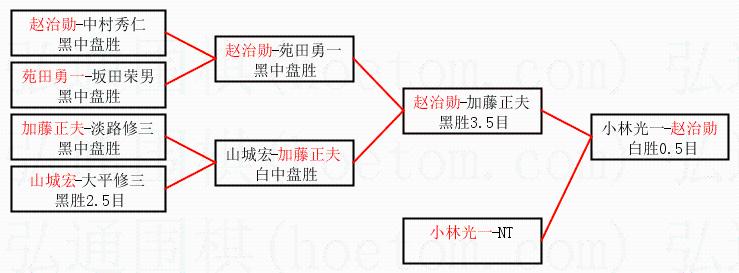 | 1.赵治勋获得冠军,小林光一获得亚军。决赛比分:赵治勋3:2小林光一。棋局: | ||