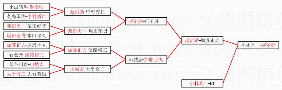 | 1.赵治勋获得冠军,小林光一获得亚军。决赛比分:赵治勋3:2小林光一。棋局: | ||